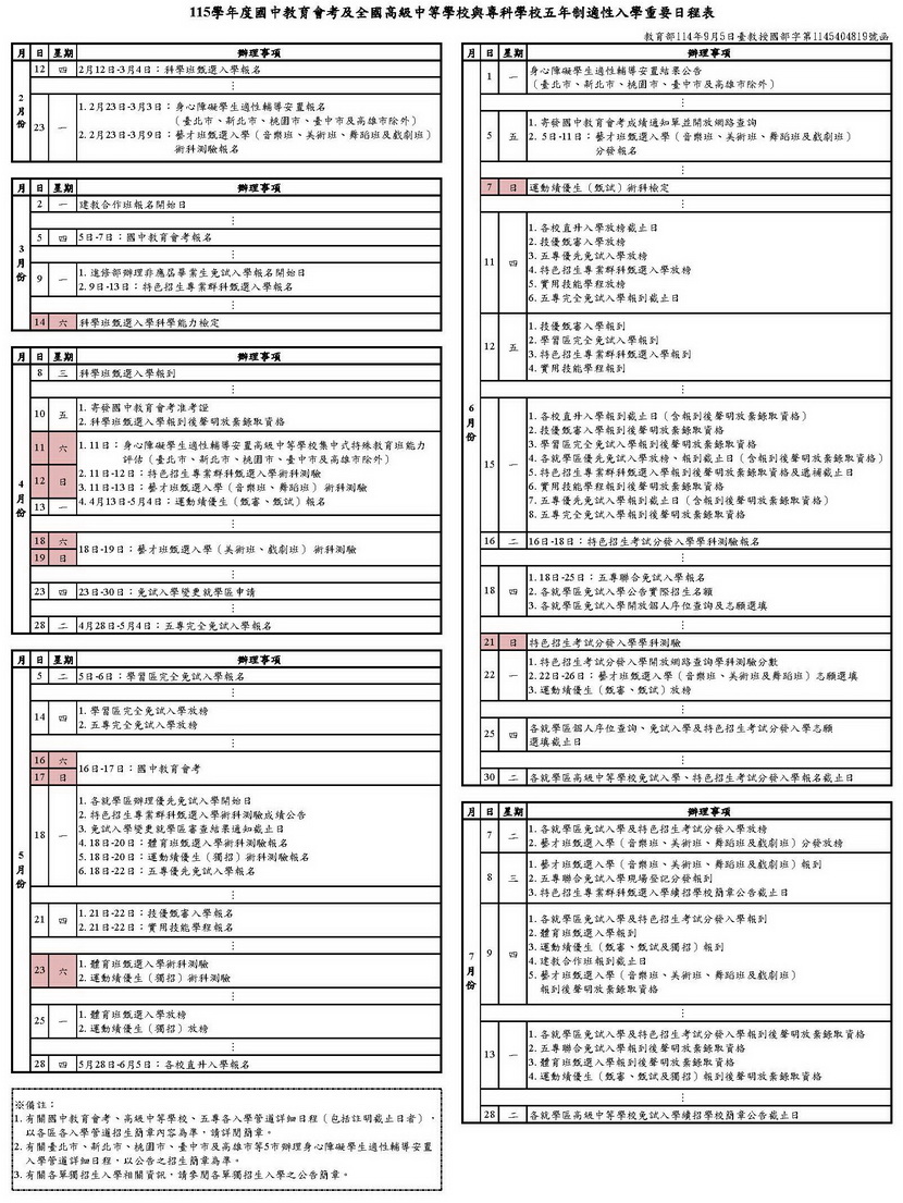 115年優先免試入學 (開始辦理) |